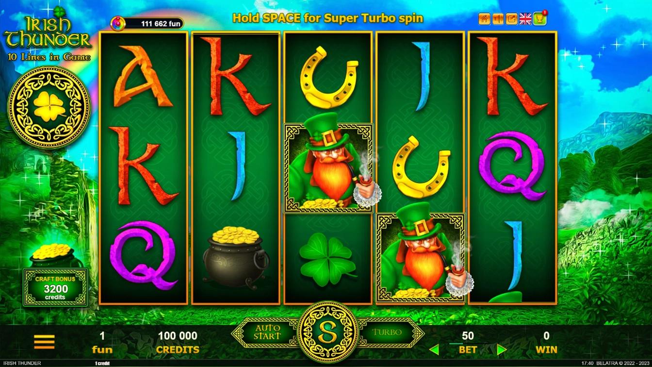 This opportunity will be given to you by an online slot machine from BELATRA - Irish Thunder. Try your luck and maybe a cute leprechaun in a funny hat will make you rich!