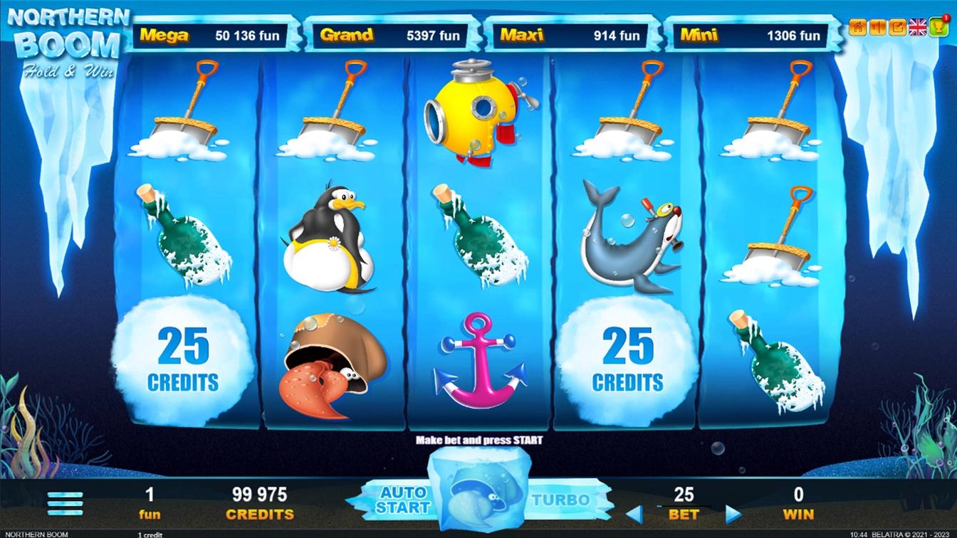 This is a positive video slot Northern Boom, where not only winter fun will bring you joy, but also funny representatives of the local fauna, as well as huge winnings!