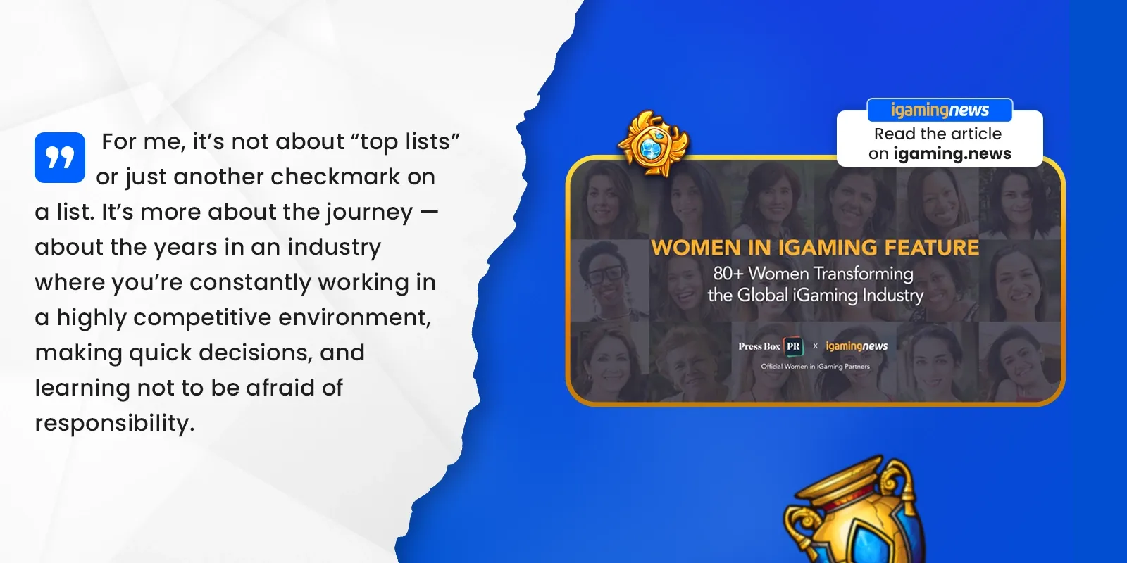 Kateryna's inclusion among 80 women shaping iGaming's future was a nod to that very balance, a legacy that fuels forward motion.